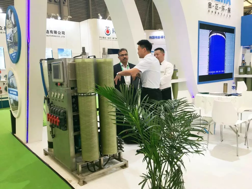 金正環保市場部部長王少嬡在展會同期“2018膜法在華東地區工業節水與水處理行業中應用研討會”上,作《DTRO膜在工業園區高鹽廢水中的應用》的現場報告,用多個成功案例介紹金正環保標準化,模塊化,集裝箱式DT特種膜設備的卓越效果,多位聽眾現場咨詢合作模式。