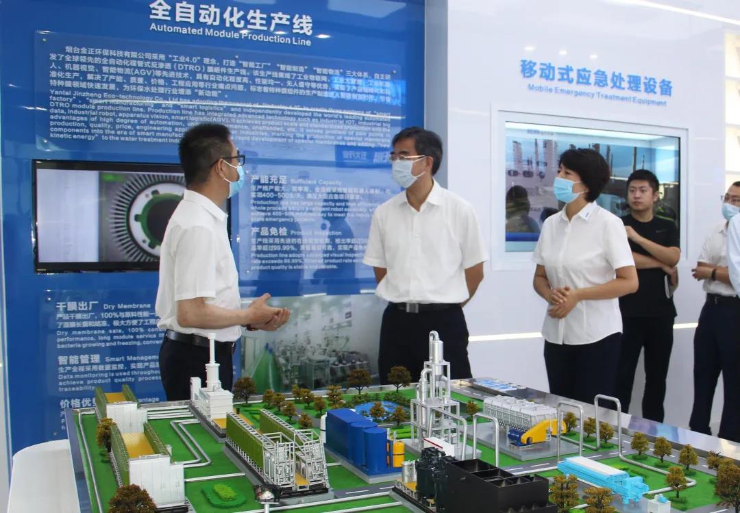 曾贊榮副省長一行先后參觀了煙臺金正環(huán)保公司展廳、全自動化生產線和設備裝配車間,詳細了解產業(yè)布局、核心產品、核心技術、成本優(yōu)勢、智能制造、項目案例等情況。曾贊榮副省長對煙臺金正環(huán)保在水處理領域取得的成績給予充分肯定和認可,希望公司再接再厲,不斷加大研發(fā)力度,拓展新的業(yè)務領域,尤其能夠在鄉(xiāng)鎮(zhèn)和農村污水治理領域形成突破,為農村生態(tài)環(huán)境改善提供更多的新技術、新裝備,為保衛(wèi)祖國的綠水青山做出應有的貢獻。